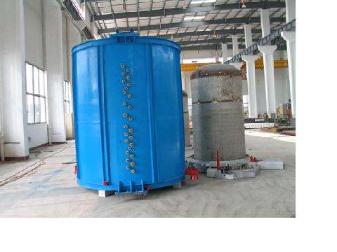 罩式退火炉由一个加热罩、两个炉座和阀架等组成:加热罩由钢板卷成园形经焊接加工而成,在罩身的上部有供吊钩起吊换罩的位置,下部有三个支承炉罩的支承脚,底部装有沙封刀,在加热时使加热罩能直接压在炉内罩的法兰上使其达到密封的效果,另在两个导向环,以便加热罩能方便准确地吊放在炉座上。