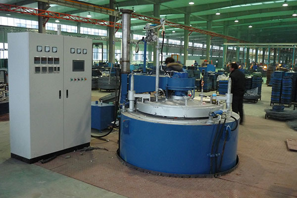 气体渗氮炉罐盖的升降采用电动液压装置,炉罐盖升降平稳、无抖动;